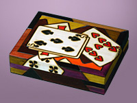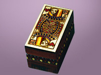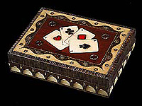 Wooden boxes for playing cards, bridge, poker, blackjack, faro, canasta, baccarat, and other card games. All card boxes hold two decks of cards.